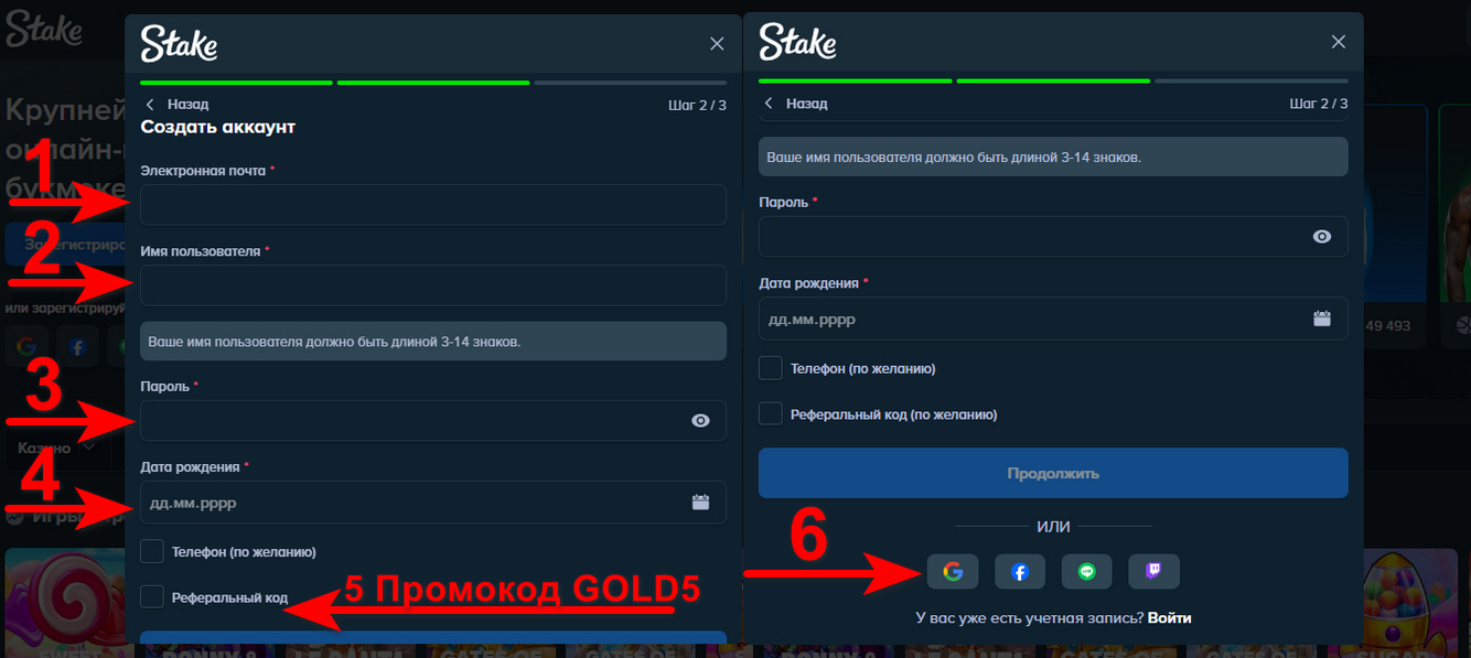 Создание учетной записи на сайте Stake.com занимает менее минуты. Для начала необходимо перейти на официальный сайт казино и нажать кнопку «Зарегистрироваться».